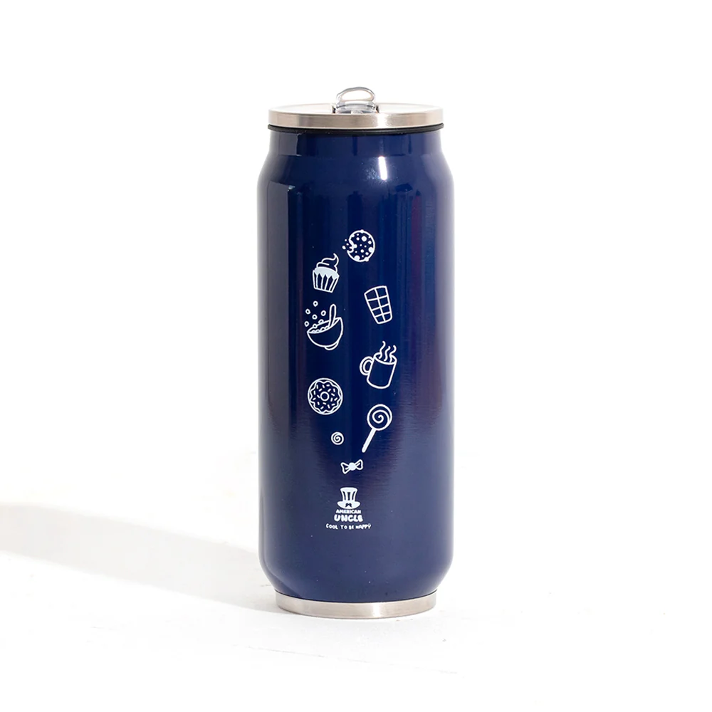 Borraccia Cool to be Happy, borraccia in acciaio blu da 500ml con cannuccia antibatterica integrata